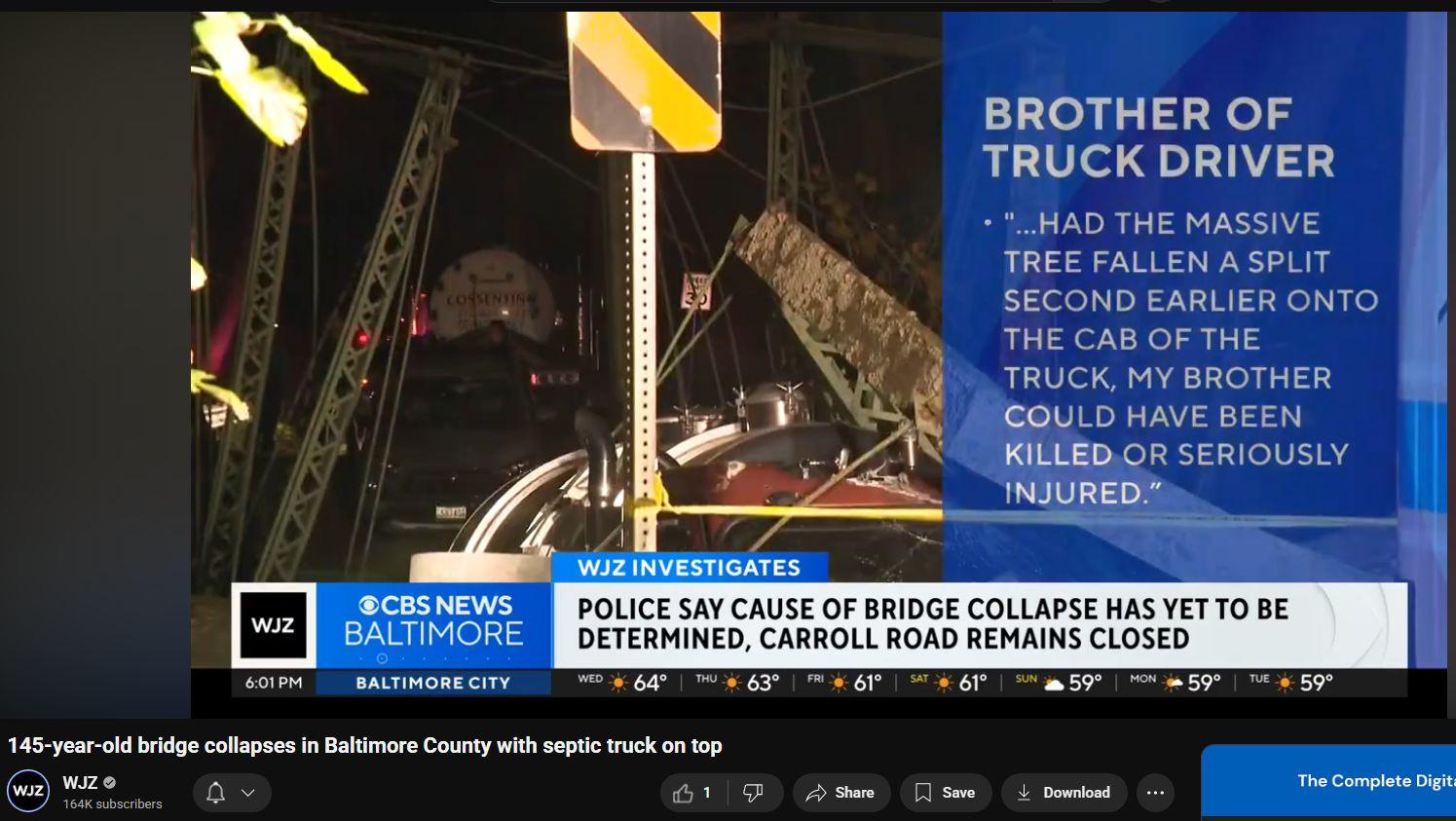 “Another bridge collapse, this time in Baltimore County…” — Same-old playbook. Pure MKULTRA. “An ORGanization (DE) called (WISH) has 140+ part series on the anomalies of FSK bridge takedown and the coming Chesa Bay bridge takedown. This is part of the MKULTRA predictive programming. It may also be true. z0g mass media will ‘never let a good calamity go to waste’.”