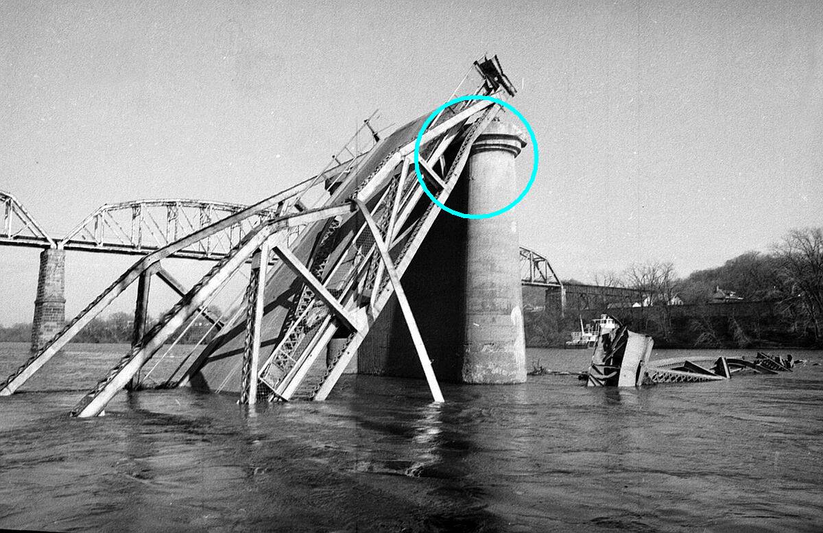 The Ohio River was not very deep in this area. Was some material disintegrated, explaining why more was not seen above the waterline? Realizing this image is further along in the clean-up, but it does give some perspective.