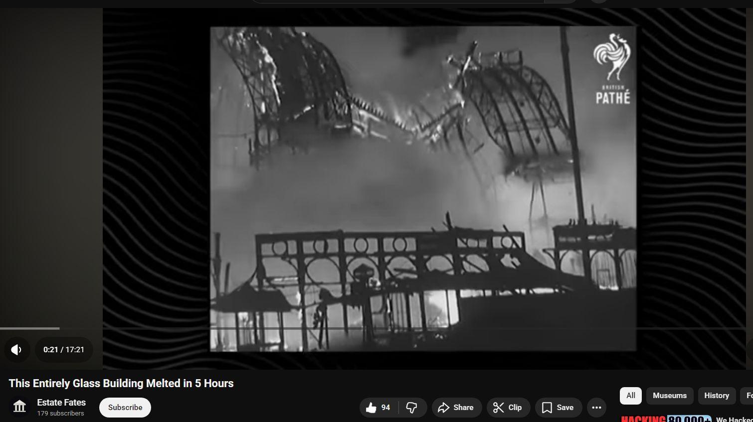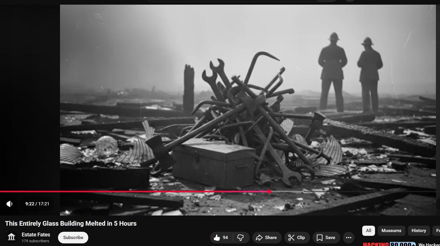 “6 meter panes of glass had fused and [molten] run across the stone floors like spilled water.” 8:15 in