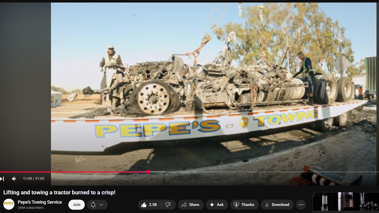 Lifting and towing a tractor burned to a crisp!  DEW Attack