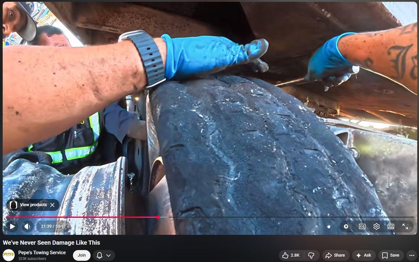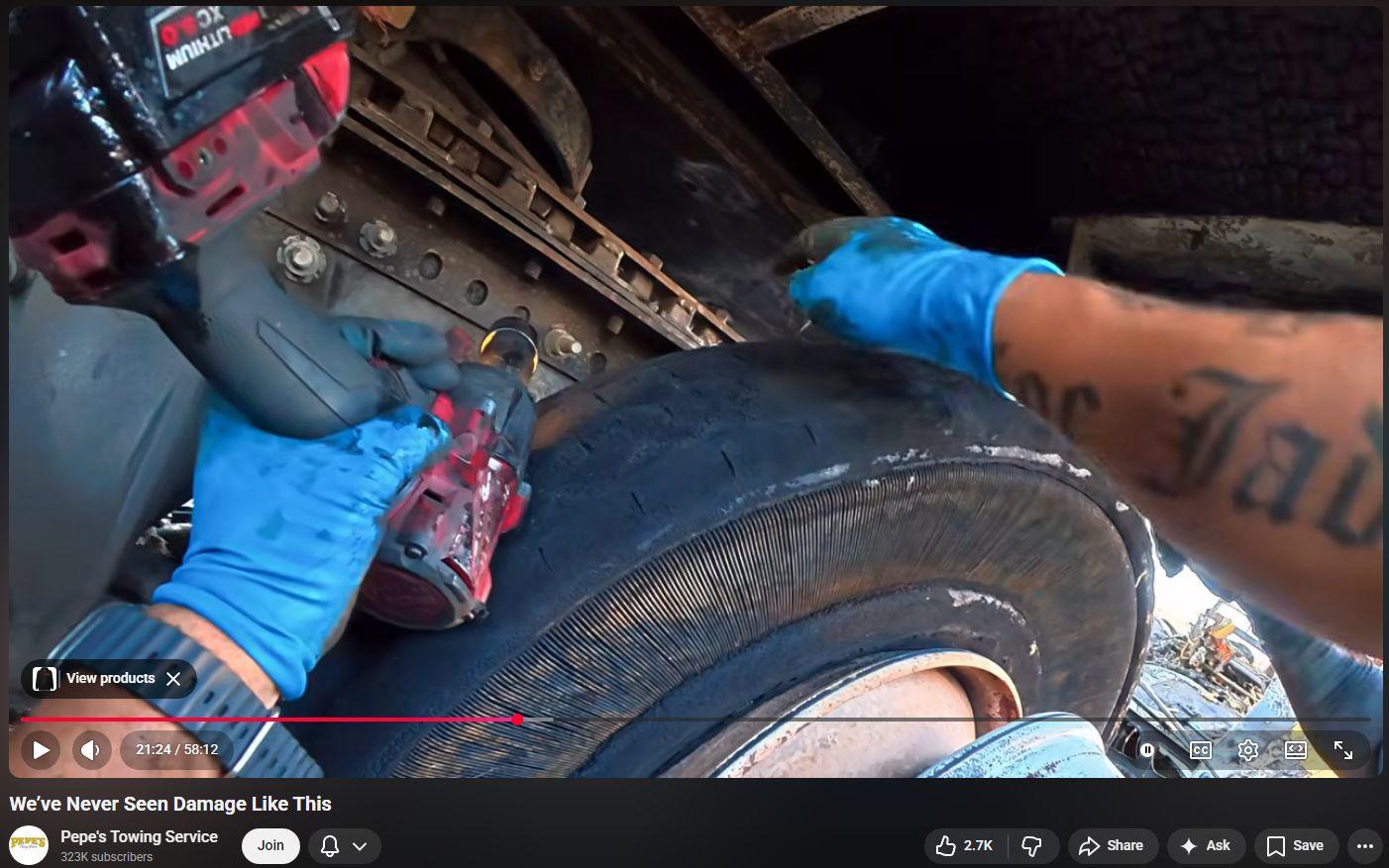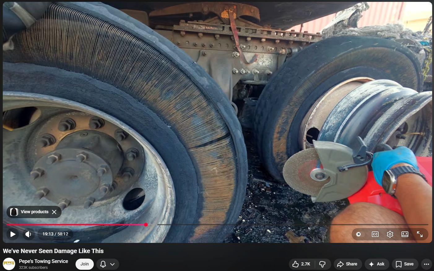 Despite daily confronting irrefutable damage that is hallmark of Directed Energy Weapons (DEW) Attack, Pepe’s Towing of LA, CA remains utterly, painfully clueless as to the true cause of the peculiar, inexplicable, otherworldly damage. Meanwhile, this video offers superb, unique, close-up footage of superheated tractor-trailer “steel belted” radial tires that are only partly yet wholly destroyed. The uniform absence of rubber at thinnest sidewalls next to the superheated steel belts is evidence of beamed microwaves having induced eddy currents that superheated the steel “belts” that then largely if not wholly sublimated (turned from solid into gas) the tire rubber. The cremated-down-to-ash-and-charcoal of the main truck’s cab, engine, etc is so commonplace just all the many others. It’s so interesting to now ‘have eyes that can not but see’ and constantly marvel those many all around having eyes totally unable if not reflexively unwilling to see.